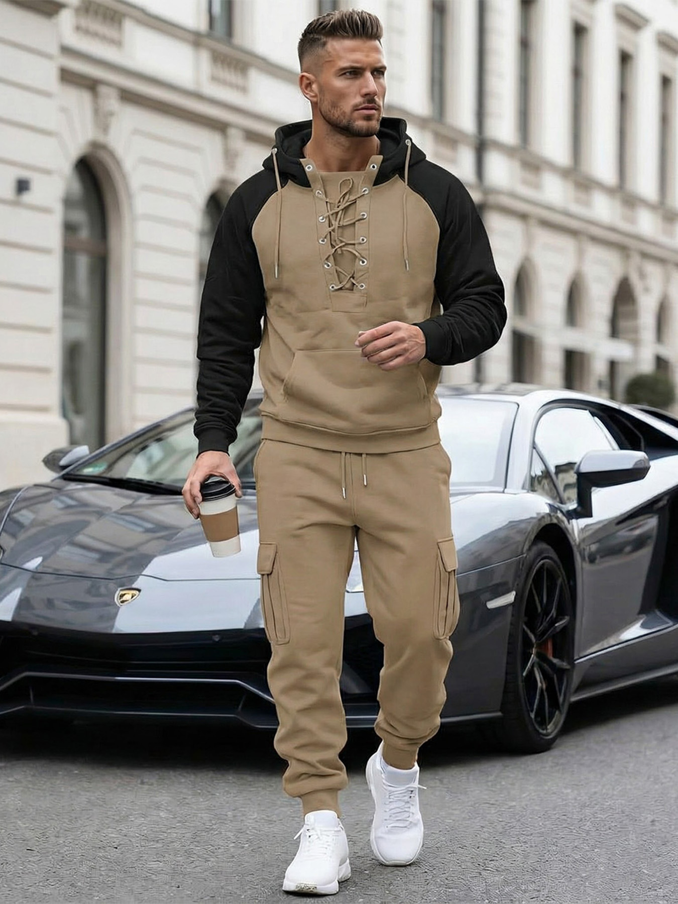 Fleece-lined Cargo Pants With Raglan Sleeves And Multiple Pockets