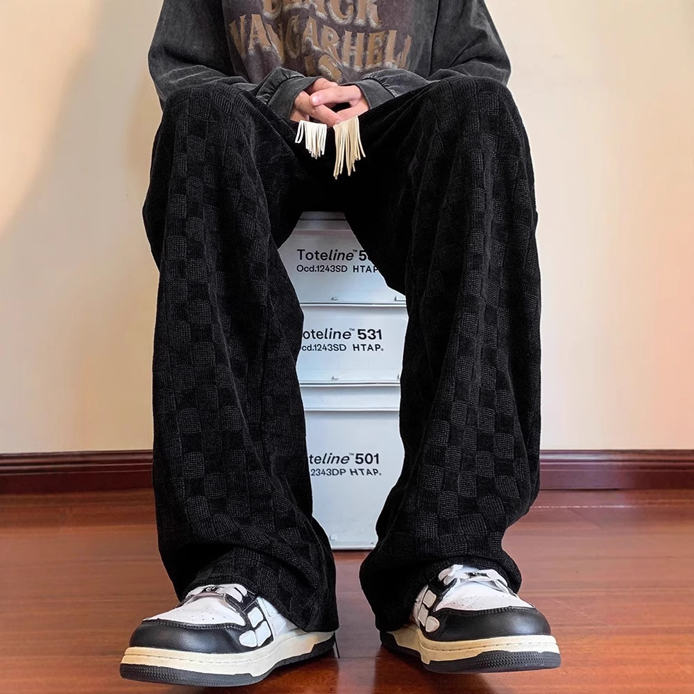 Mens Casual Plus-Size Pants With A Checkerboard Pattern