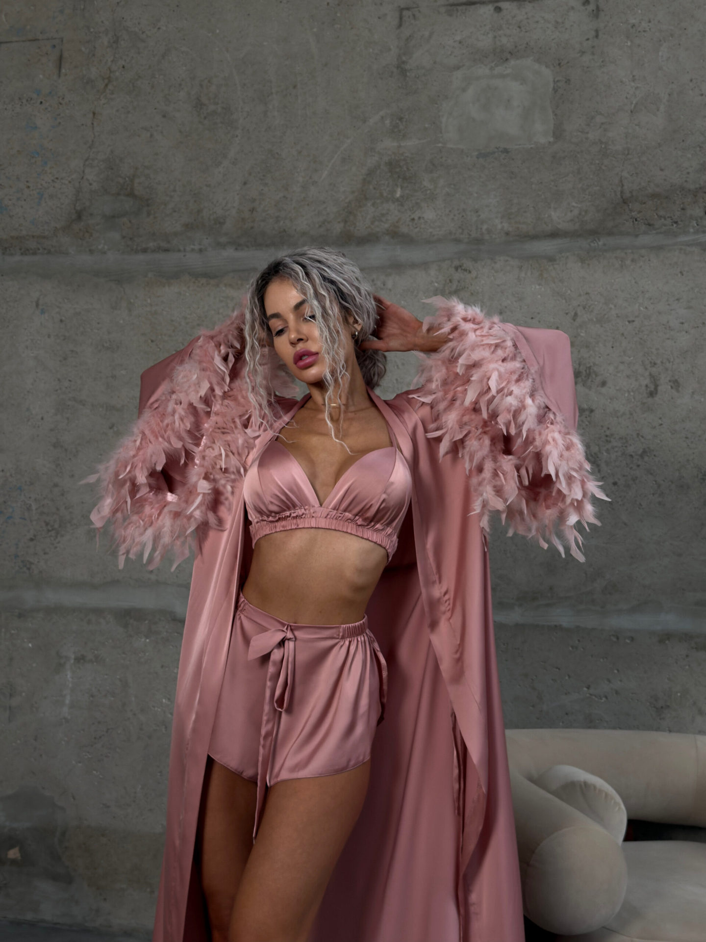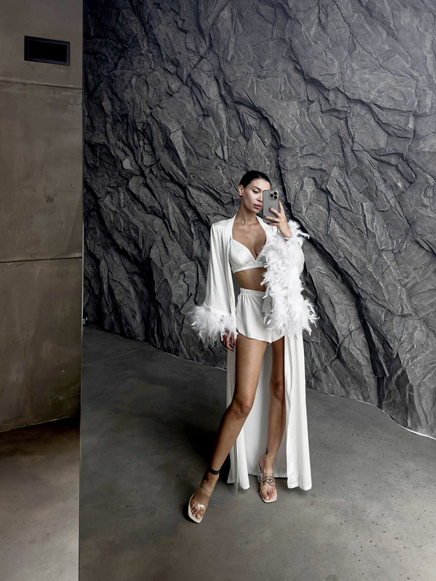 Womens Loungewear Underwear Shorts Feather Pajama Set